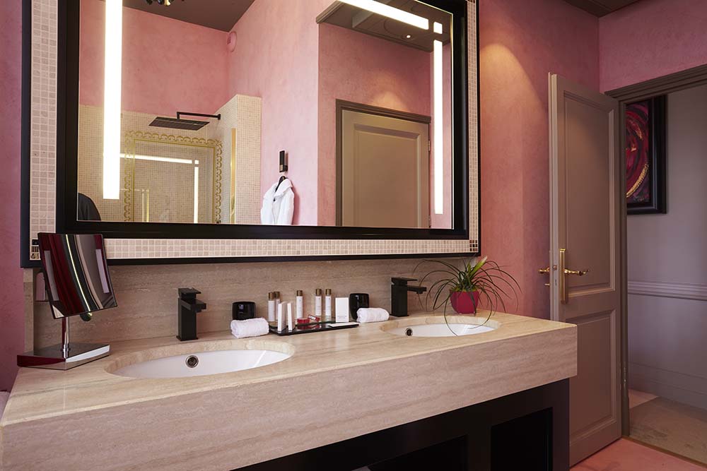 La Suite Princesse est aussi munie d’un salon et d’un bureau. La salle de bain est munie d’une douche à l'italienne avec un meuble double vasque. Les toilettes sont séparées.